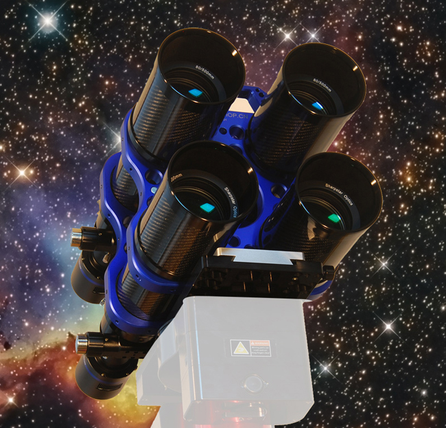 The product is designed by ASTROSHOP and consists of four ShparSTAR 80APO With Flat field .